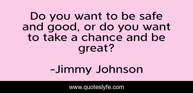 This page presents the quote "Do you want to be safe and good, or do you want to take a chance and be great?". Author of this quote is Jimmy Johnson. This quote is about great, good,.