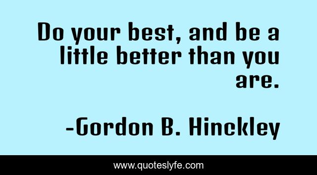 "Gordon B. Hinckley Quotes." Quoteslyfe.com, 2025. Sat. 06 Dec. 2025. <https://www.quoteslyfe.com/quote/Do-your-best-and-be-a-little-105979>.