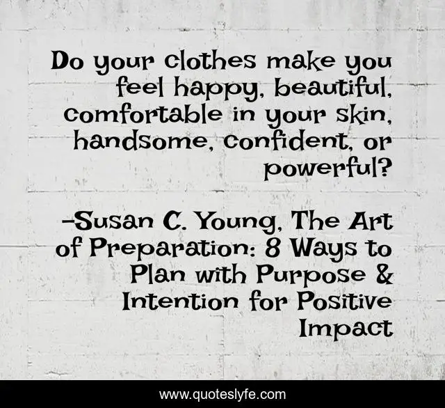 "Susan C. Young, The Art of Preparation: 8 Ways to Plan with Purpose & Intention for Positive Impact Quotes." Quoteslyfe.com, 2025. Sat. 06 Dec. 2025. <https://www.quoteslyfe.com/quote/Do-your-clothes-make-you-feel-happy-227464>.