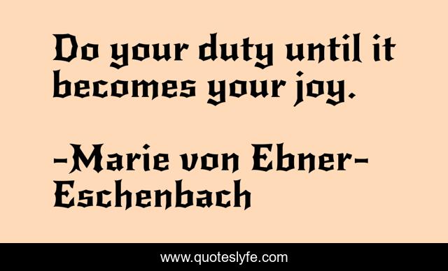 This page presents the quote "Do your duty until it becomes your joy.". Author of this quote is Marie von Ebner-Eschenbach. .