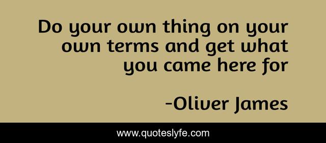 This page presents the quote "Do your own thing on your own terms and get what you came here for". Author of this quote is Oliver James. This quote is about life, self-expression, be-yourself, self-actualization, inspirational, enthusiasm,.
