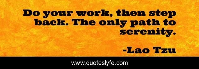 This page presents the quote "Do your work, then step back. The only path to serenity.". Author of this quote is Lao Tzu. This quote is about action, enthusiasm, serenity, inspirational,.