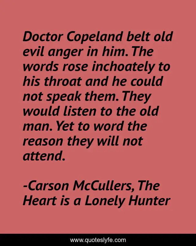 "Carson McCullers, The Heart is a Lonely Hunter Quotes." Quoteslyfe.com, 2025. Sat. 06 Dec. 2025. <https://www.quoteslyfe.com/quote/Doctor-Copeland-belt-old-evil-anger-in-167138>.