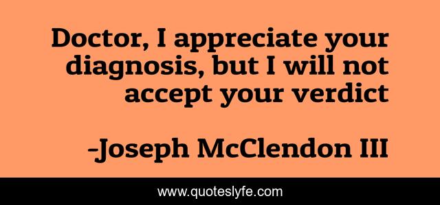 This page presents the quote "Doctor, I appreciate your diagnosis, but I will not accept your verdict". Author of this quote is Joseph McClendon III. .