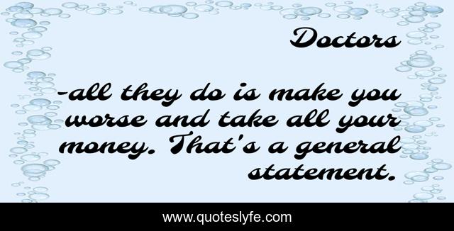 "all they do is make you worse and take all your money. That's a general statement. Quotes." Quoteslyfe.com, 2025. Sat. 06 Dec. 2025. <https://www.quoteslyfe.com/quote/Doctors-148128>.