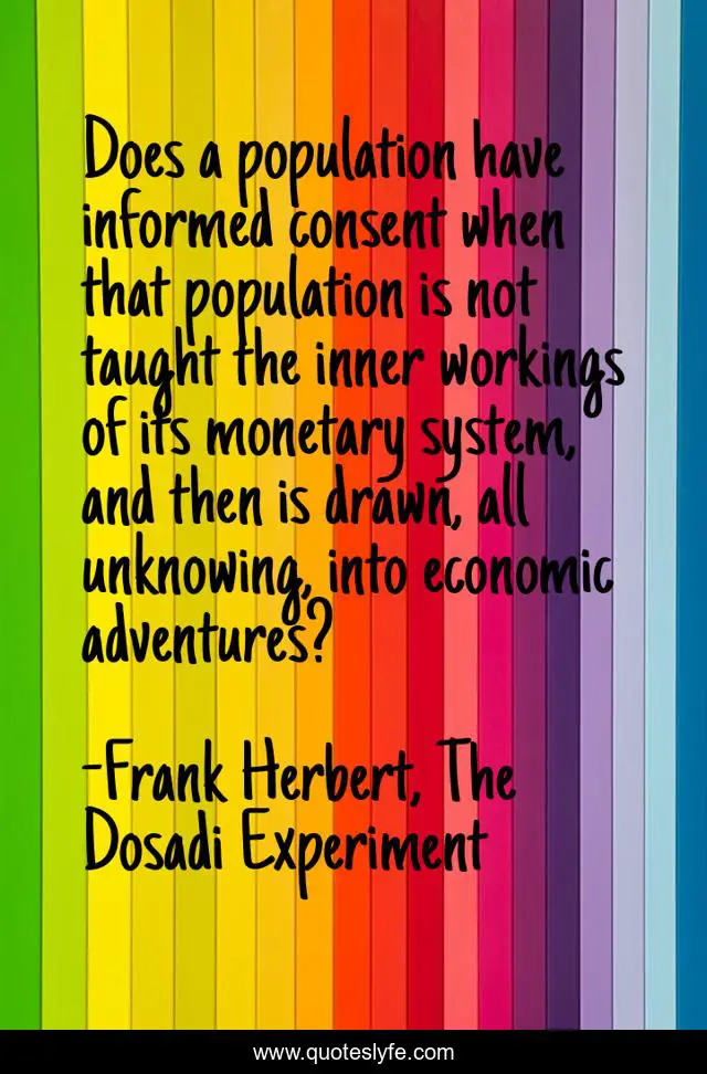 "Frank Herbert, The Dosadi Experiment Quotes." Quoteslyfe.com, 2025. Fri. 05 Dec. 2025. <https://www.quoteslyfe.com/quote/Does-a-population-have-informed-consent-when-166669>.