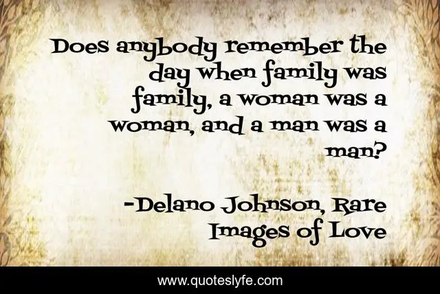 This page presents the quote "Does anybody remember the day when family was family, a woman was a woman, and a man was a man?". Author of this quote is Delano Johnson, Rare Images of Love. This quote is about woman, family, man,.