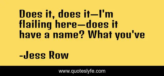 This page presents the quote "Does it, does it—I'm flailing here—does it have a name? What you've". Author of this quote is Jess Row. This quote is about names, understanding,.