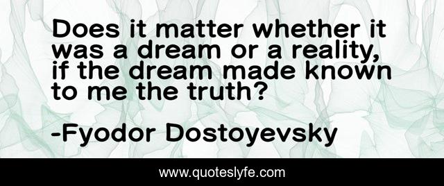 This page presents the quote "Does it matter whether it was a dream or a reality, if the dream made known to me the truth?". Author of this quote is Fyodor Dostoyevsky. This quote is about life, reality, dreams, truth, unconsciousness,.
