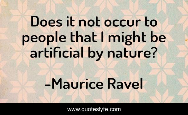 This page presents the quote "Does it not occur to people that I might be artificial by nature?". Author of this quote is Maurice Ravel. This quote is about creativity, artist, humor, self-knowledge,.