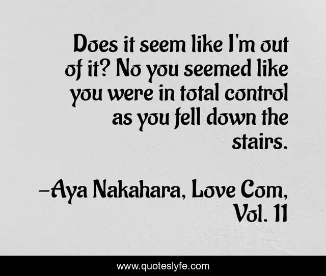 This page presents the quote "Does it seem like I'm out of it? No you seemed like you were in total control as you fell down the stairs.". Author of this quote is Aya Nakahara, Love★Com, Vol. 11. .