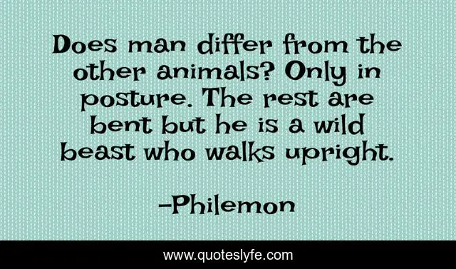 This page presents the quote "Does man differ from the other animals? Only in posture. The rest are bent but he is a wild beast who walks upright.". Author of this quote is Philemon. .