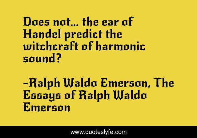 This page presents the quote "Does not… the ear of Handel predict the witchcraft of harmonic sound?". Author of this quote is Ralph Waldo Emerson, The Essays of Ralph Waldo Emerson. This quote is about music, evolution, transcendentalism,.