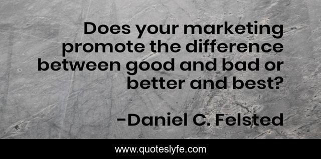 This page presents the quote "Does your marketing promote the difference between good and bad or better and best?". Author of this quote is Daniel C. Felsted. This quote is about marketing, advertising, sales,.
