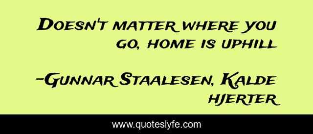 "Gunnar Staalesen, Kalde hjerter Quotes." Quoteslyfe.com, 2025. Sun. 07 Dec. 2025. <https://www.quoteslyfe.com/quote/Doesn-t-matter-where-you-go-home-182721>.