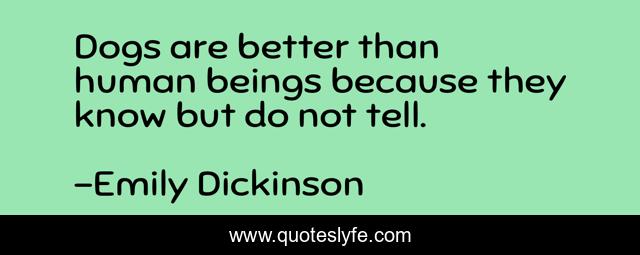 This page presents the quote "Dogs are better than human beings because they know but do not tell.". Author of this quote is Emily Dickinson. This quote is about better, human,.