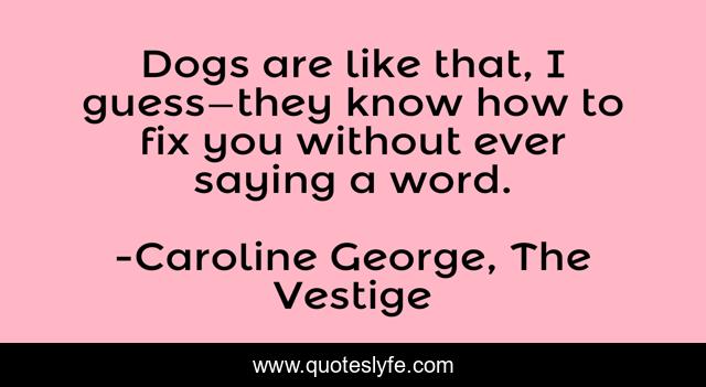 "Caroline George, The Vestige Quotes." Quoteslyfe.com, 2025. Fri. 05 Dec. 2025. <https://www.quoteslyfe.com/quote/Dogs-are-like-that-I-guess-they-207329>.