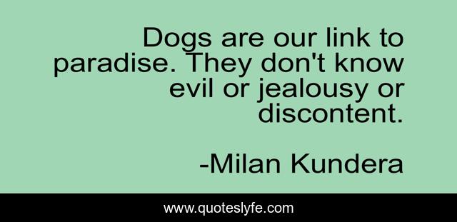 This page presents the quote "Dogs are our link to paradise. They don't know evil or jealousy or discontent.". Author of this quote is Milan Kundera. This quote is about jealousy, evil,.