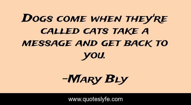 "Mary Bly Quotes." Quoteslyfe.com, 2025. Fri. 05 Dec. 2025. <https://www.quoteslyfe.com/quote/Dogs-come-when-they-re-called-cats-272699>.