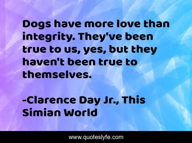 "Clarence Day Jr., This Simian World Quotes." Quoteslyfe.com, 2025. Sun. 07 Dec. 2025. <https://www.quoteslyfe.com/quote/Dogs-have-more-love-than-integrity-They-229477>.