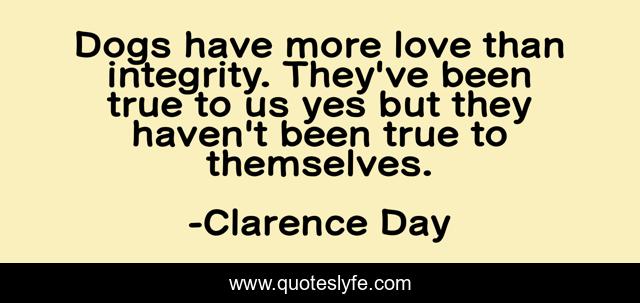 This page presents the quote "Dogs have more love than integrity. They've been true to us yes but they haven't been true to themselves.". Author of this quote is Clarence Day. .