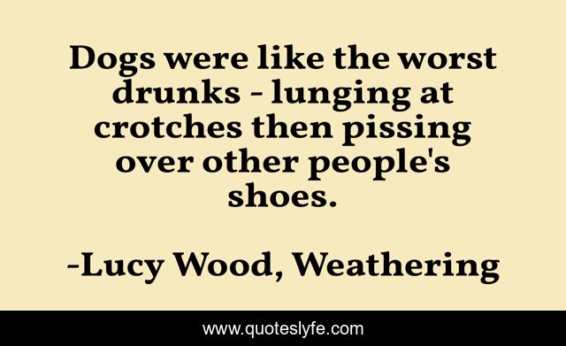 This page presents the quote "Dogs were like the worst drunks - lunging at crotches then pissing over other people's shoes.". Author of this quote is Lucy Wood, Weathering. .