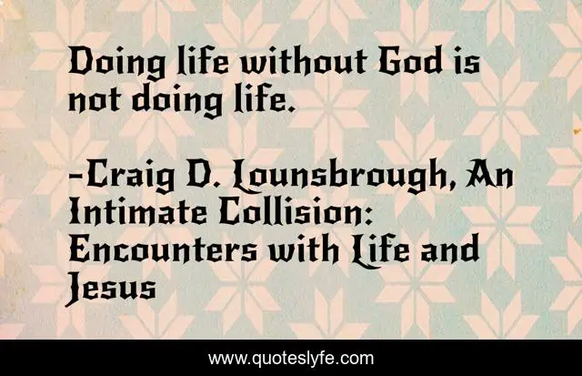 "Craig D. Lounsbrough, An Intimate Collision: Encounters with Life and Jesus Quotes." Quoteslyfe.com, 2025. Sat. 06 Dec. 2025. <https://www.quoteslyfe.com/quote/Doing-life-without-God-is-not-doing-105523>.