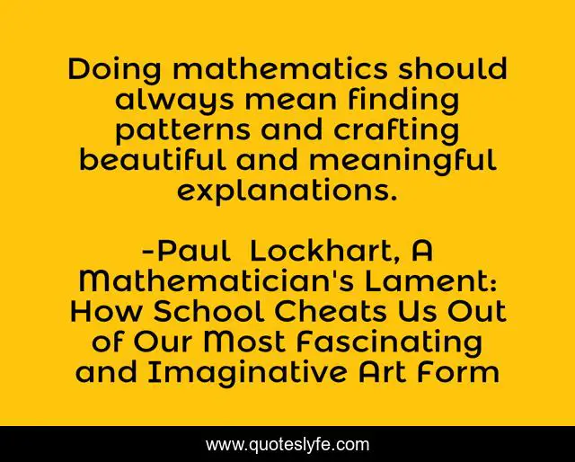 "Paul Lockhart, A Mathematician's Lament: How School Cheats Us Out of Our Most Fascinating and Imaginative Art Form Quotes." Quoteslyfe.com, 2025. Sat. 06 Dec. 2025. <https://www.quoteslyfe.com/quote/Doing-mathematics-should-always-mean-finding-patterns-60732>.