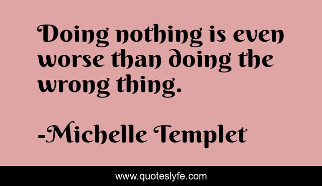 This page presents the quote "Doing nothing is even worse than doing the wrong thing.". Author of this quote is Michelle Templet. This quote is about philosophy, evil, morality,.