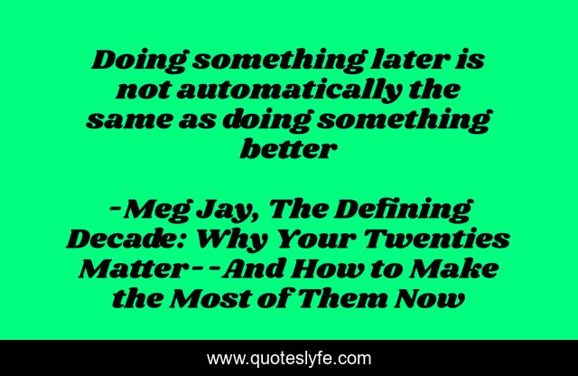 "Meg Jay, The Defining Decade: Why Your Twenties Matter--And How to Make the Most of Them Now Quotes." Quoteslyfe.com, 2025. Sat. 06 Dec. 2025. <https://www.quoteslyfe.com/quote/Doing-something-later-is-not-automatically-the-35249>.