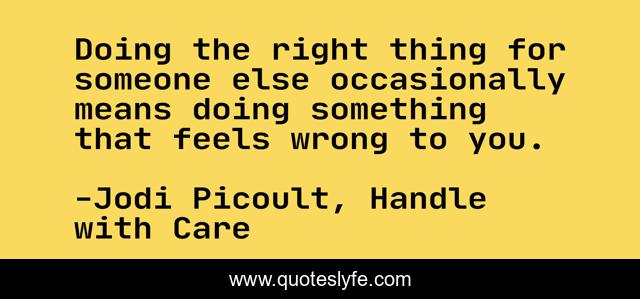 "Jodi Picoult, Handle with Care Quotes." Quoteslyfe.com, 2025. Fri. 05 Dec. 2025. <https://www.quoteslyfe.com/quote/Doing-the-right-thing-for-someone-else-235735>.