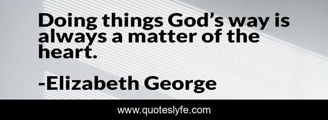 This page presents the quote "Doing things God’s way is always a matter of the heart.". Author of this quote is Elizabeth George. This quote is about heart, god, chirstian, christianity, christian-living, elizabeth-george,.