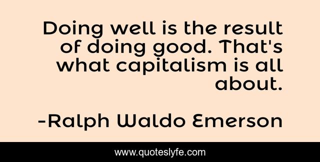 This page presents the quote "Doing well is the result of doing good. That's what capitalism is all about.". Author of this quote is Ralph Waldo Emerson. This quote is about doing good, capitalism,.