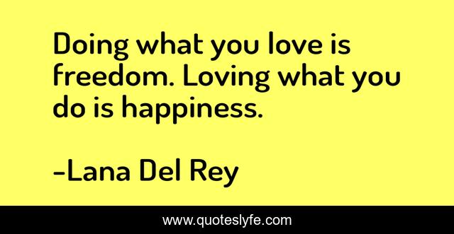 This page presents the quote "Doing what you love is freedom. Loving what you do is happiness.". Author of this quote is Lana Del Rey. This quote is about freedom, queen, lana-del-rey, halcyon, music, happiness,.