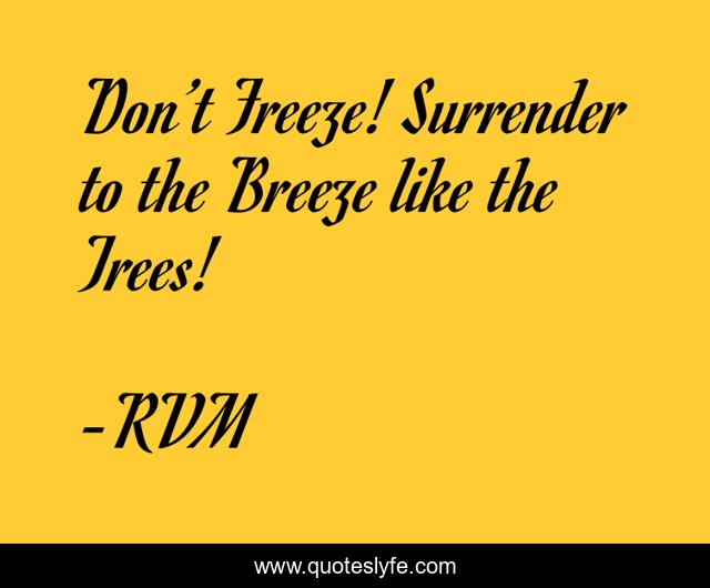 This page presents the quote "Don’t Freeze! Surrender to the Breeze like the Trees!". Author of this quote is RVM. This quote is about motivation, inspiration,.