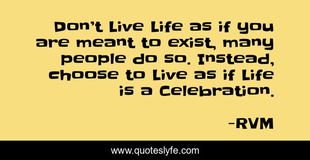 This page presents the quote "Don’t Live Life as if you are meant to exist, many people do so. Instead, choose to Live as if Life is a Celebration.". Author of this quote is RVM. This quote is about motivation, inspiration,.