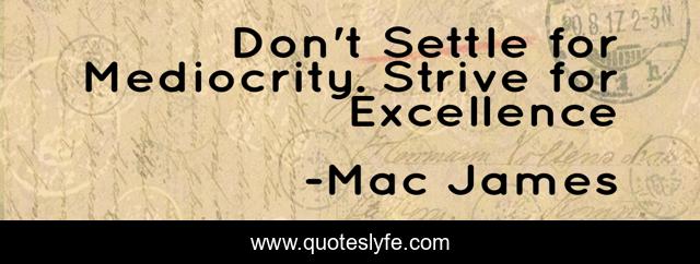 "Mac James Quotes." Quoteslyfe.com, 2025. Fri. 05 Dec. 2025. <https://www.quoteslyfe.com/quote/Don-t-Settle-for-Mediocrity-Strive-for-106588>.
