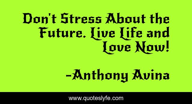 This page presents the quote "Don't Stress About the Future. Live Life and Love Now!". Author of this quote is Anthony Avina. This quote is about life, love, stress-relief, future, hope, inspirational, enthusiasm, affection,.