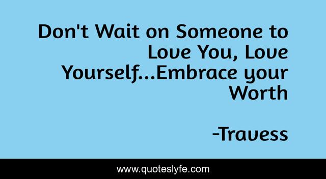 This page presents the quote "Don't Wait on Someone to Love You, Love Yourself...Embrace your Worth". Author of this quote is Travess. This quote is about love, worth, affection,.