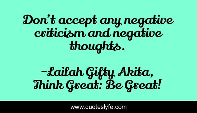 "Lailah Gifty Akita, Think Great: Be Great! Quotes." Quoteslyfe.com, 2025. Fri. 05 Dec. 2025. <https://www.quoteslyfe.com/quote/Don-t-accept-any-negative-criticism-and-94977>.