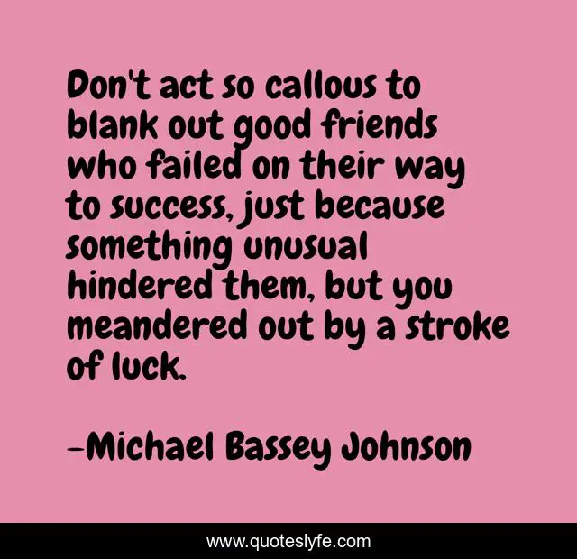 Don't act so callous to blank out good friends who failed on their way to success, just because something unusual hindered them, but you meandered out by a stroke of luck.