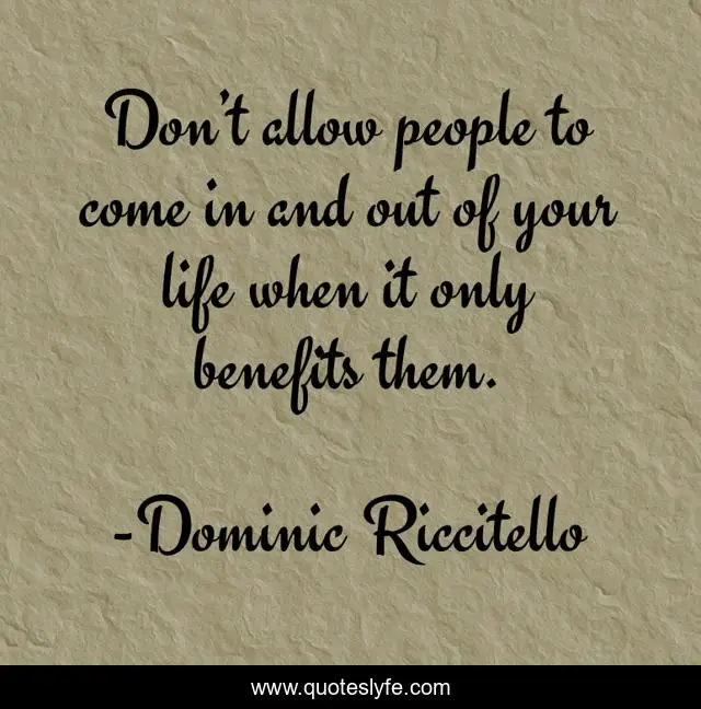 This page presents the quote "Don’t allow people to come in and out of your life when it only benefits them.". Author of this quote is Dominic Riccitello. This quote is about people, quote, self-worth, acquaintances, opinion, coming-in-and-out, friends, worth, thoughts,.