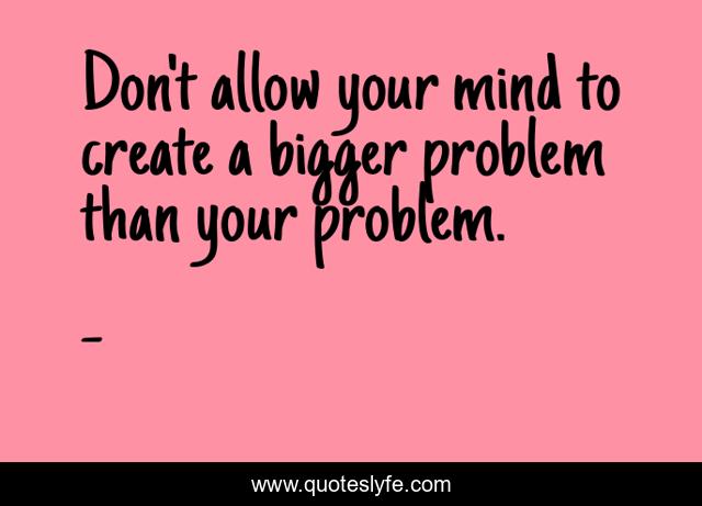 This page presents the quote "Don't allow your mind to create a bigger problem than your problem.". Author of this quote is . This quote is about edmond-mbiaka, create, probelm, your-problems-in-life, your-mind, thoughts,.