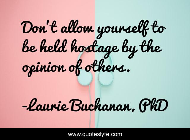 This page presents the quote "Don't allow yourself to be held hostage by the opinion of others.". Author of this quote is Laurie Buchanan, PhD. This quote is about hostage, opinions-of-others, self-esteem,.