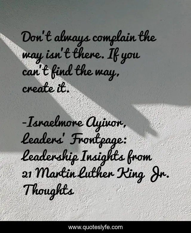 "Israelmore Ayivor, Leaders' Frontpage: Leadership Insights from 21 Martin Luther King Jr. Thoughts Quotes." Quoteslyfe.com, 2025. Fri. 05 Dec. 2025. <https://www.quoteslyfe.com/quote/Don-t-always-complain-the-way-isn-64178>.
