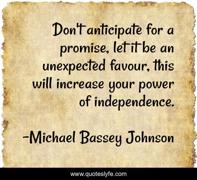 "Michael Bassey Johnson Quotes." Quoteslyfe.com, 2025. Sat. 06 Dec. 2025. <https://www.quoteslyfe.com/quote/Don-t-anticipate-for-a-promise-let-237412>.