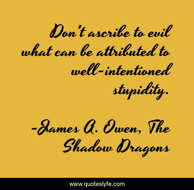 This page presents the quote "Don't ascribe to evil what can be attributed to well-intentioned stupidity.". Author of this quote is James A. Owen, The Shadow Dragons. This quote is about intentions, decisions,.
