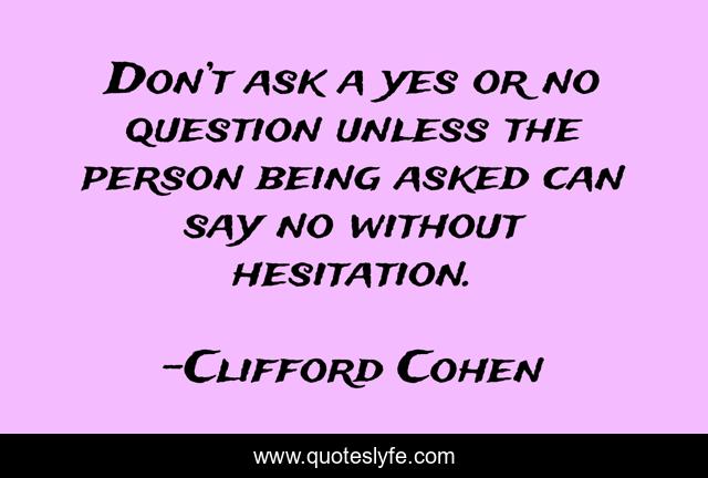 "Clifford Cohen Quotes." Quoteslyfe.com, 2025. Sun. 07 Dec. 2025. <https://www.quoteslyfe.com/quote/Don-t-ask-a-yes-or-no-245233>.