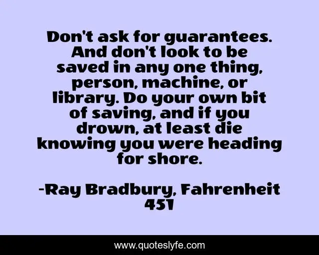 "Ray Bradbury, Fahrenheit 451 Quotes." Quoteslyfe.com, 2025. Fri. 05 Dec. 2025. <https://www.quoteslyfe.com/quote/Don-t-ask-for-guarantees-And-don-2143>.