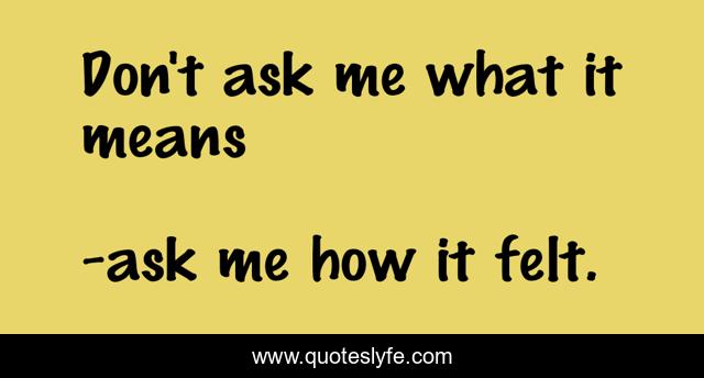This page presents the quote "Don't ask me what it means". Author of this quote is ask me how it felt.. .